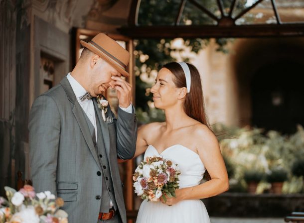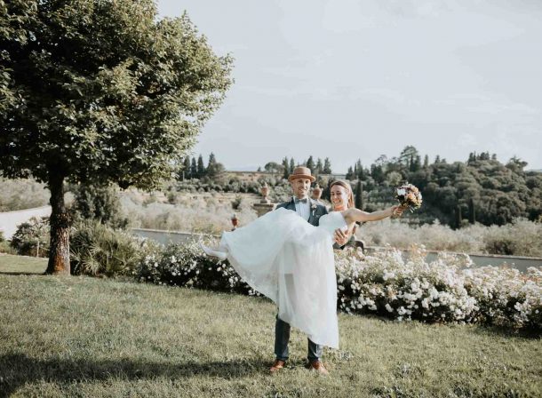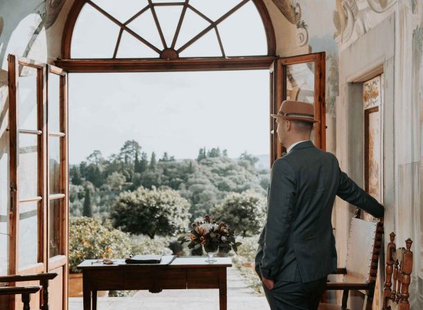 Later in the day, they arrived at Villa Medicea di Lilliano, nestled amidst the rolling hills of Tuscany with a breathtaking view on Florence. Surrounded by lush gardens and olive trees, the villa provided the perfect backdrop for their intimate ceremony.