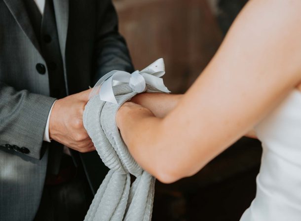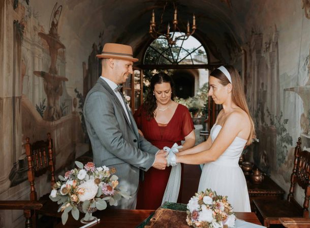 In the presence of only me and the celebrant, Anna and Daniel exchanged vows during a traditional handfasting ceremony performed by Gemma Blessings. As ribbons intertwined around their hands, they promised to love each other for all eternity.