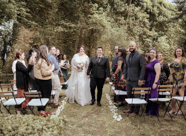 One of the most moving moments of the day was Jen’s entrance. As she walked into the garden, an acoustic version of “Nothing Else Matters” by Metallica filled the air. The emotion was immediate and shared — goosebumps, quiet smiles, and a collective breath held for a moment that needed no words.